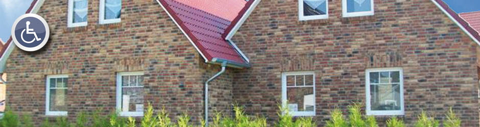 Raum-Aufteilung des Ferien-Hauses:2 Bäder: 1x im Erdgeschoss mit Dusche, WC (rollstuhlgeeignet), unterfahrbarer Waschtisch mit ausziehbarer Brause und Kippspiegel. Im Obergeschoss mit Dusche und WC.3 Schlafzimmer: 1 x im Erdgeschoss mit Doppelbett, 1 x im Obergeschoss mit Doppelbett und kleiner Sitzecke für 2 Personen, ebenso ein weiteres Einzelbett mit Auszug und noch eine zusätzliche kleine Sitzecke für 2 Personen.Maximale Belegung: 6 Personen + Kleinkind (Reisebett).Stufenloser Zugang zum Haus und zur Terrasse, allgemeine Türbreite 100 cm im EG. Im Erdgeschoss überall viel Freiraum zum Drehen des Rollstuhls.